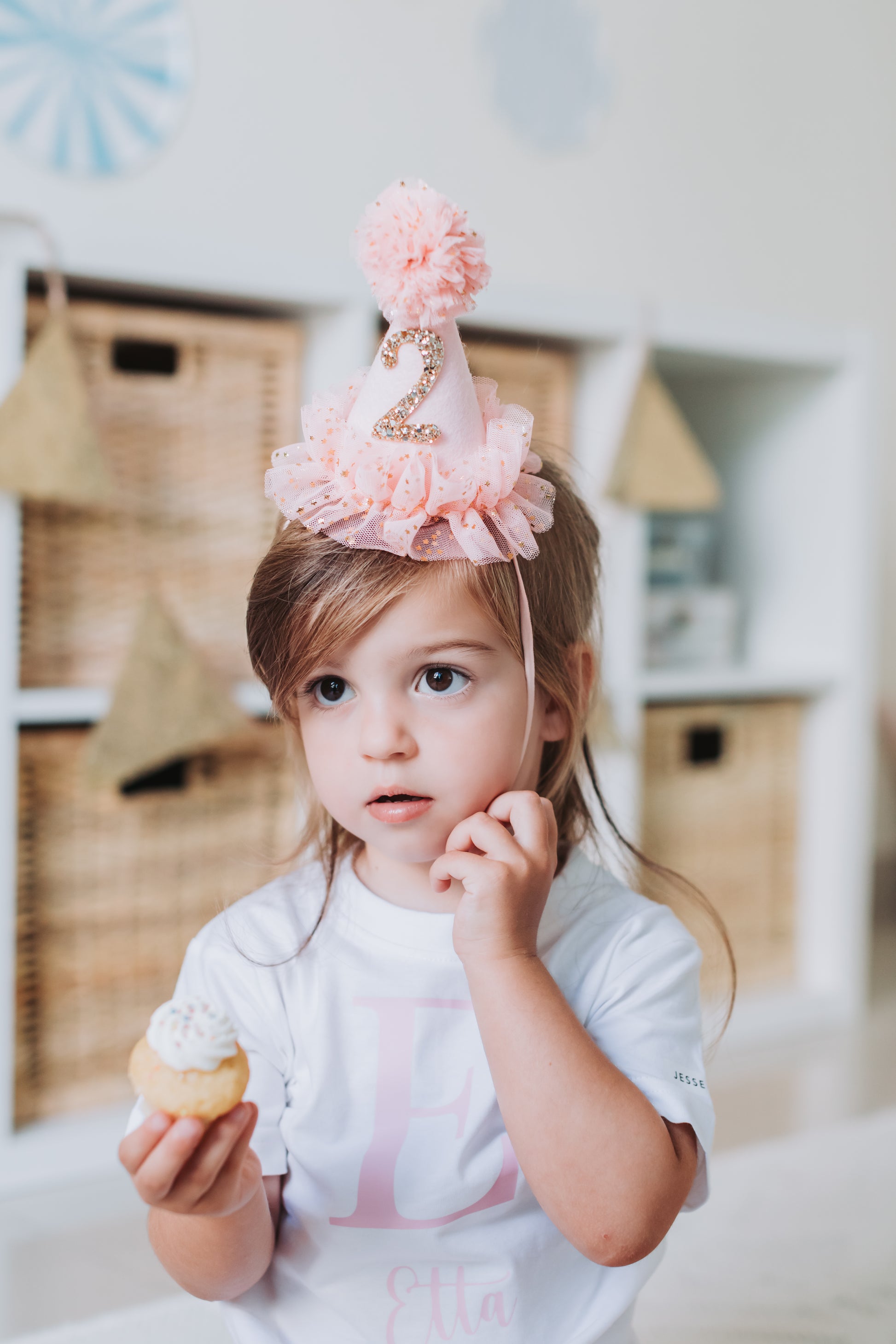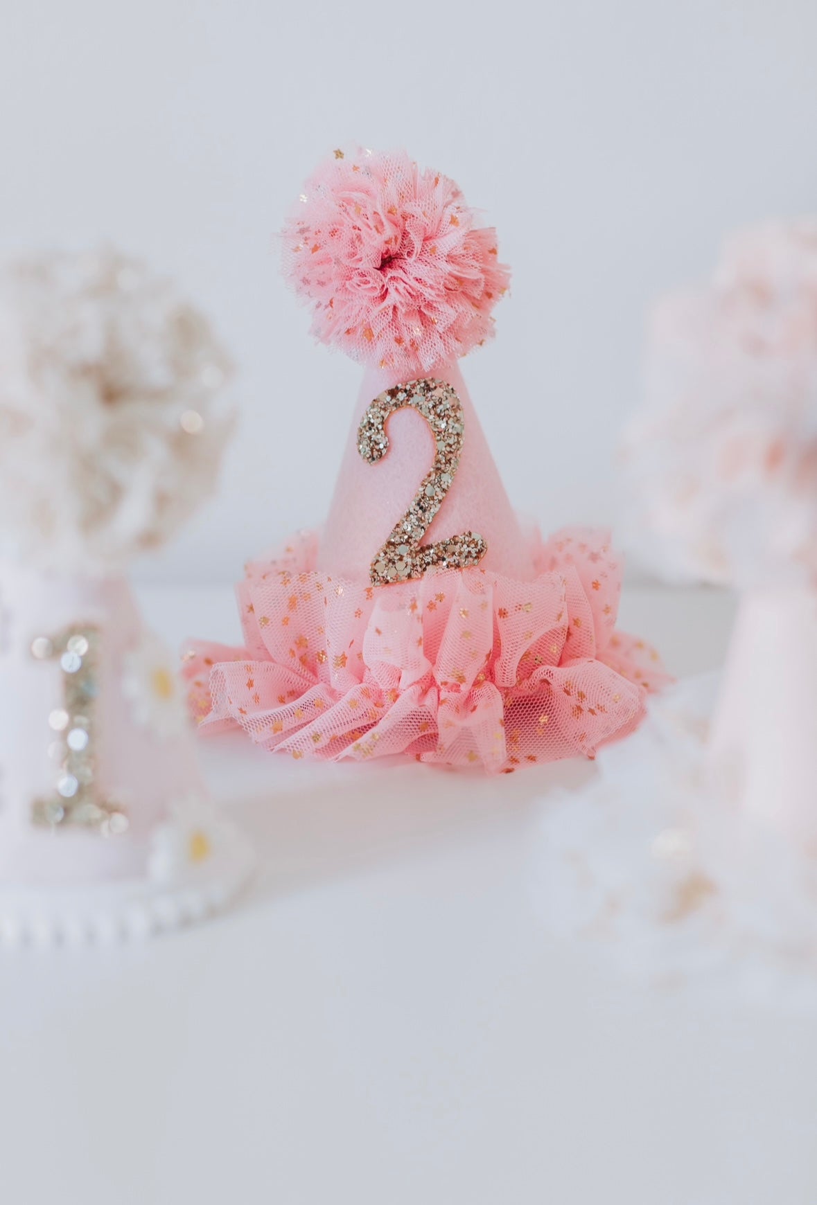 Pink tulle party hat.
